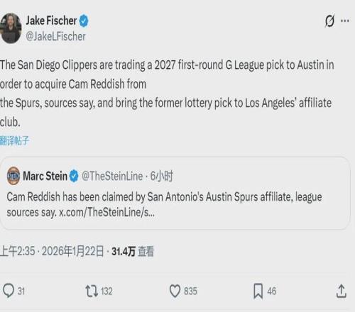 北京时间1月22日,两则发展联盟的签约消息,都是大家很熟悉的球员:1、马刺下属球队奥斯汀马刺‌签下卡姆-雷迪什,并将其交易至快船下属的圣地亚哥快船队,换来一个发展联盟首轮签;2、热火下属球队签约小丹尼斯-史密斯。